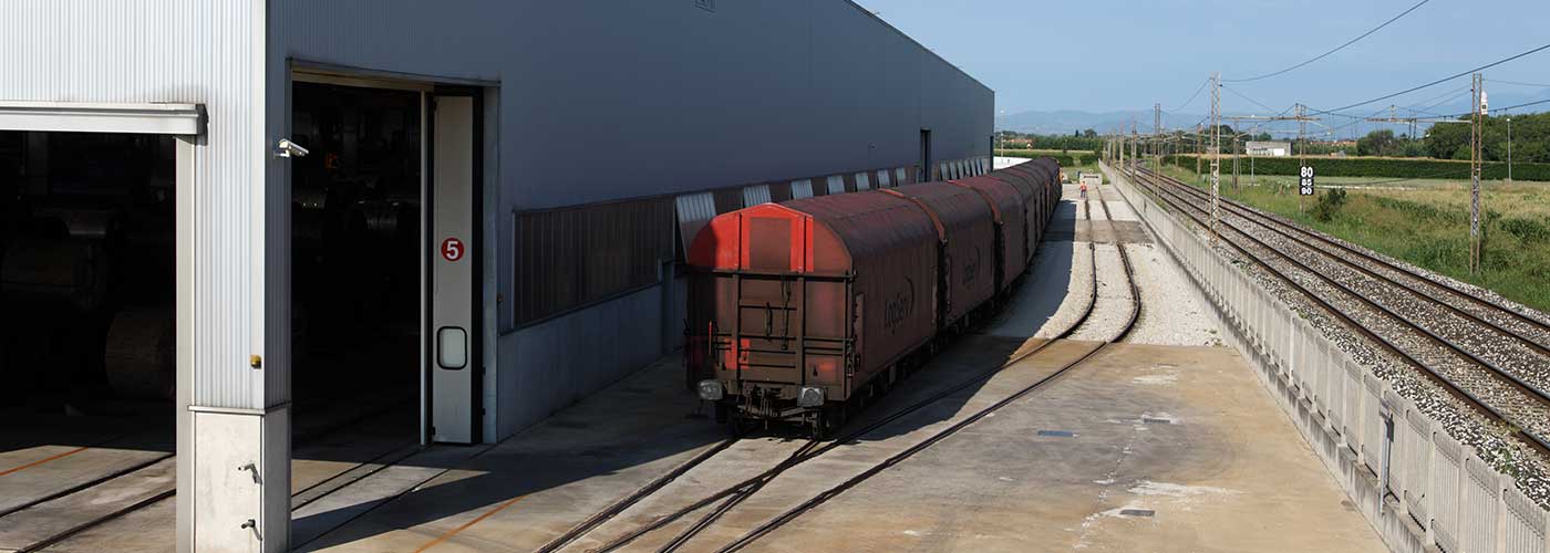Large part of the material is introduced and stored in covered and equipped areas, connected to the railway line inside factories which then process it.